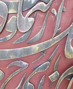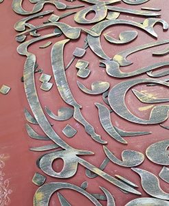 توضیحات: این اثر بر روی بوم نقاشی و با استفاده از رنگ اکریلیک و چوب اجرا شده است. برجسته بودن اشعار موجب چشم نواز شدن اثر و ارزشمندی آن شده است.