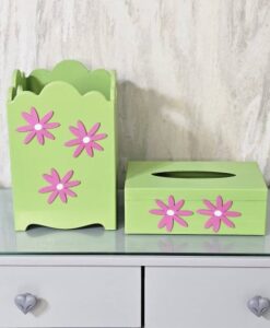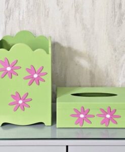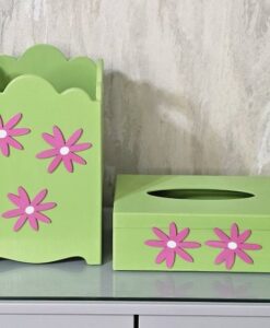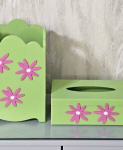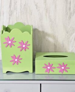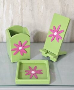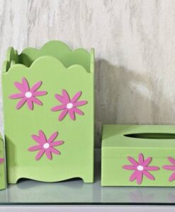 - ست شامل: سطل زباله، جادستمالی، جامدادی، استند موبایل، زیرلیوانی