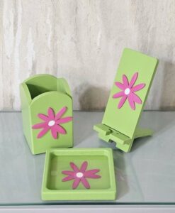 - ست شامل: سطل زباله، جادستمالی و سبد همه کاره، جامدادی، شلف و آویز