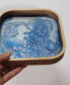 روی نقاشی برای مقاومت بیشتر و ضد آب شدن با رزین پوشانده شده است.