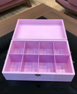 - جعبه چوبی تیبگ، ساعت، دمنوش دکوپاژ ضدآب با قابلیت جداشدن مقسم و تک قسمتی شدن